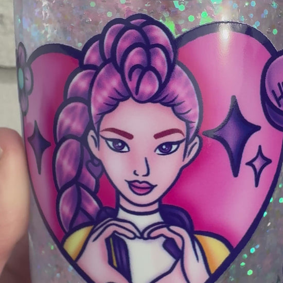 Our kpop hearts acrylic snowglobe tumbler.