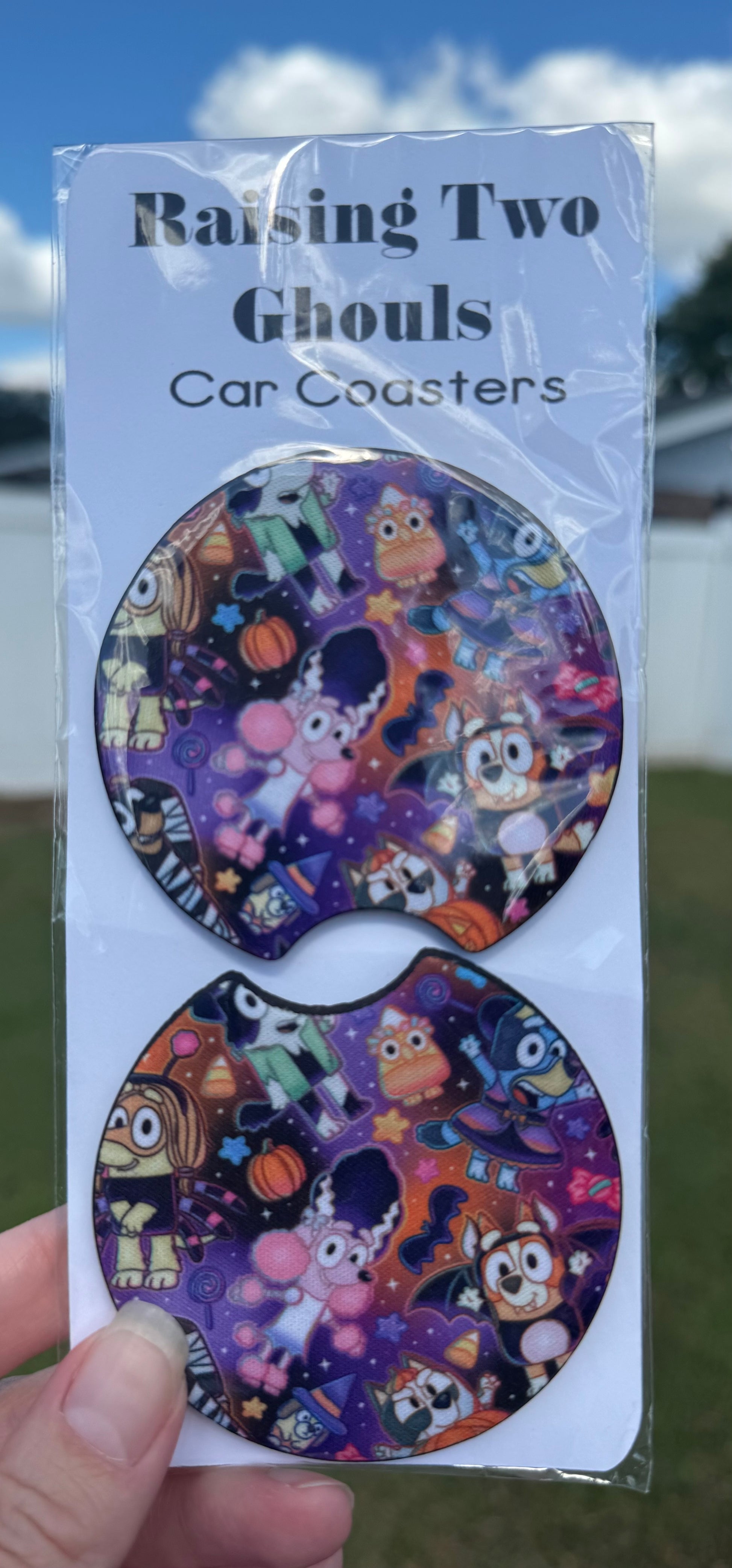 Our spooky heeler car coasters, make sure to check out our matching tumblers! This comes as a set of 2 and will fit most vehicle cup holders.