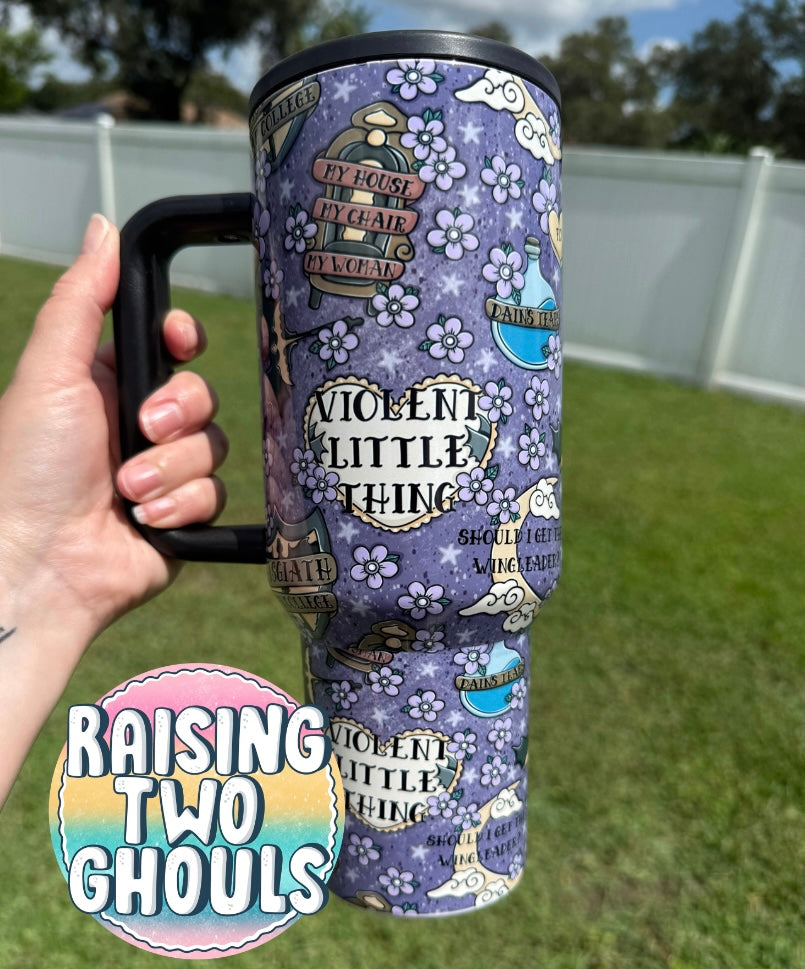 Our war college tattoo style bookish 40 oz tumbler! This listing includes one tumbler with lid and reusable straw. The lid for this cup is leak proof when the straw is folded into the lid!